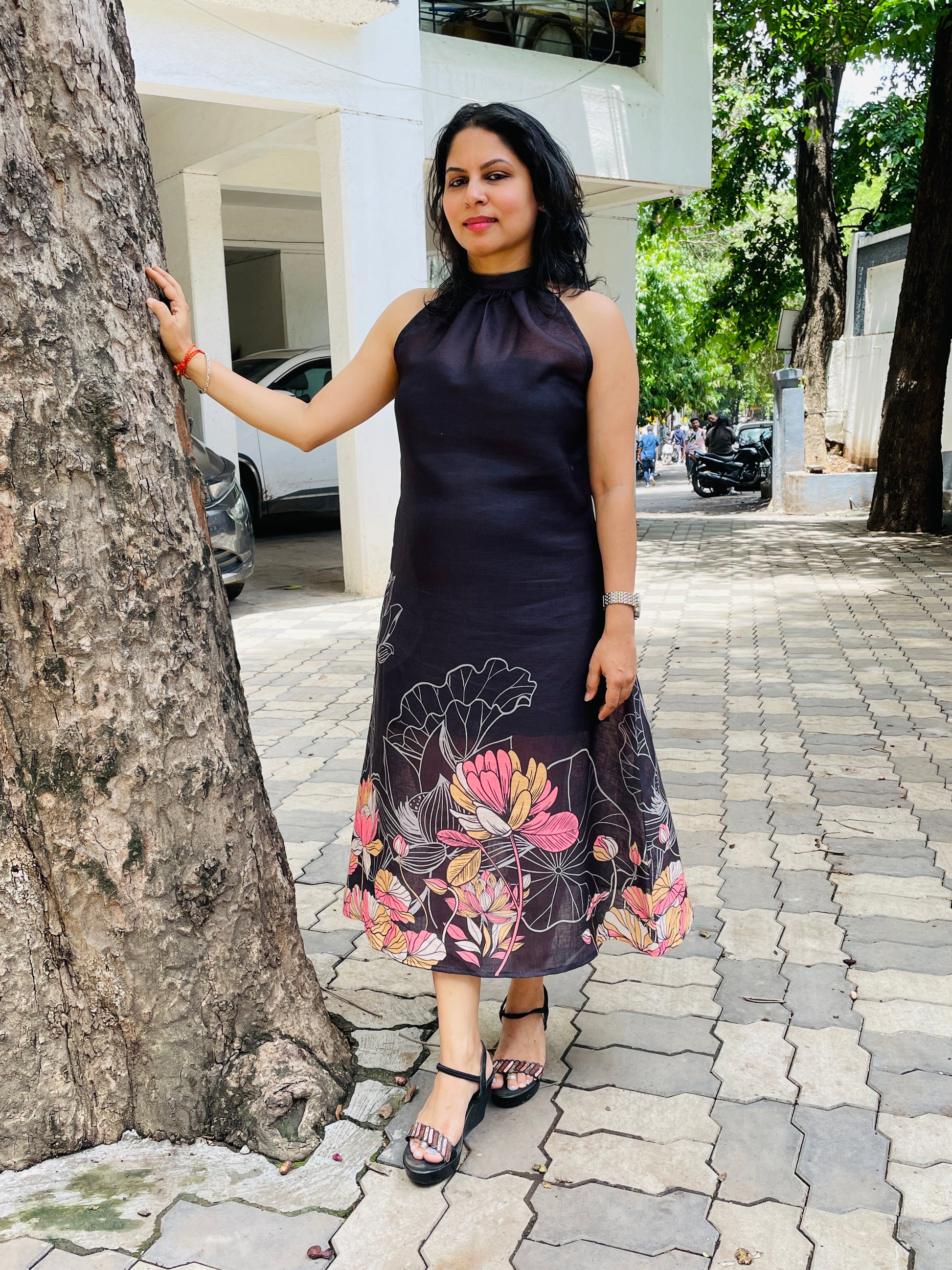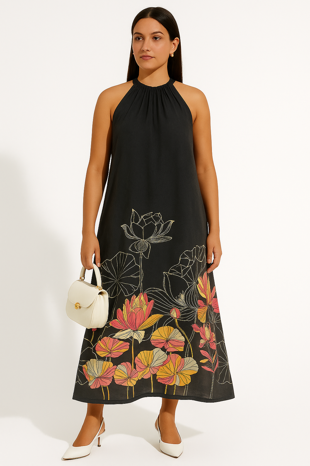 BEEAURA “Where elegance meets earth — this flowy silhouette draped in lotus blooms is your go-to for effortless grace. Styled for the bold, inspired by tradition.