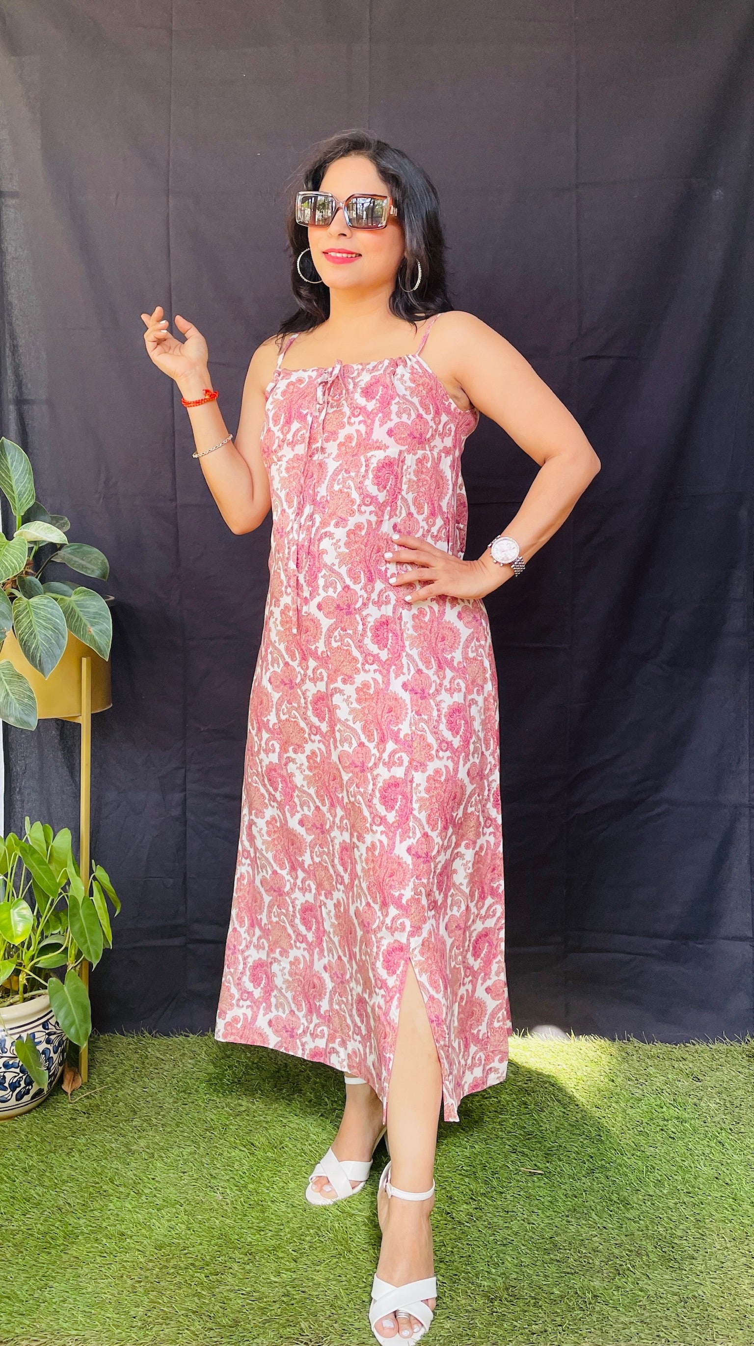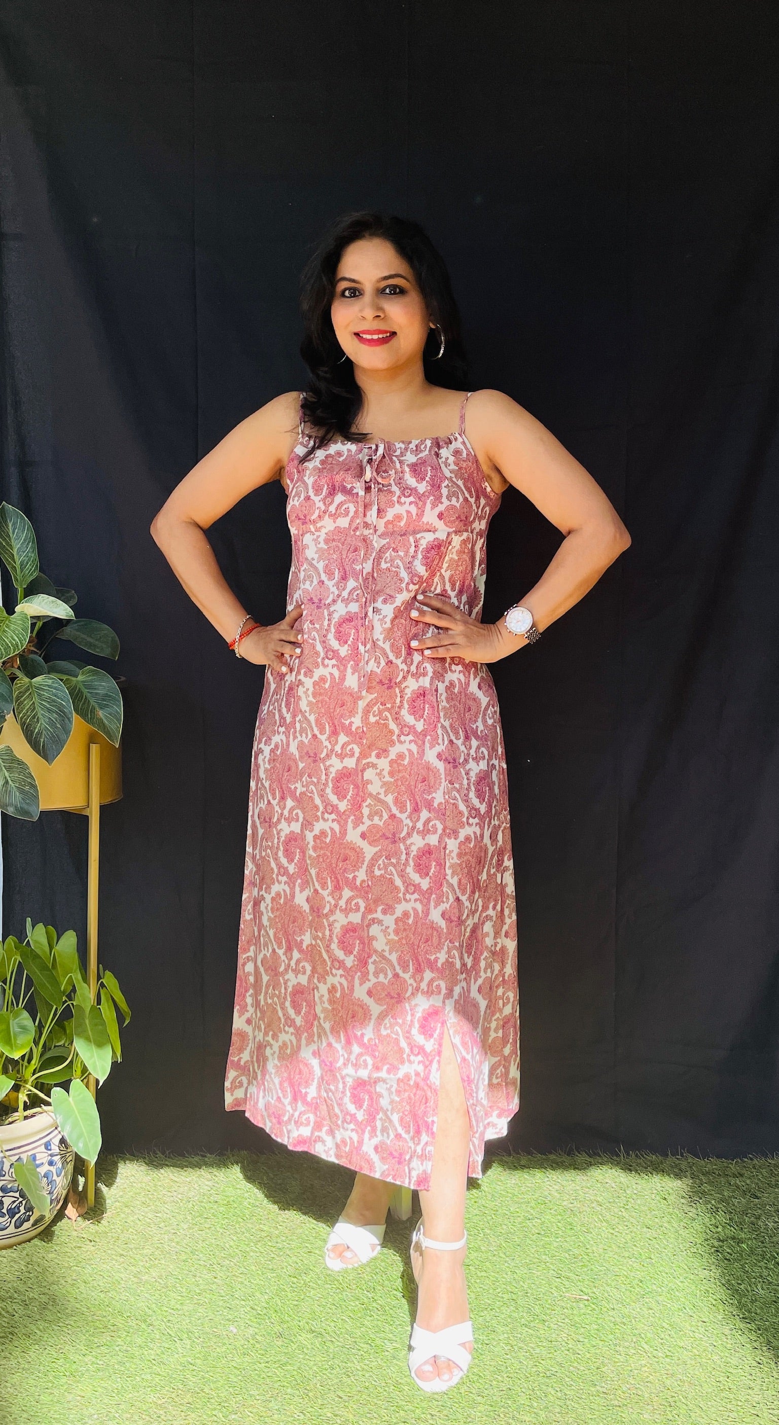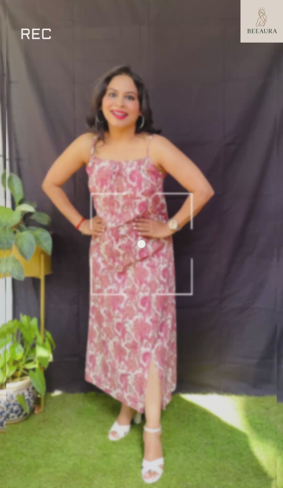 Step into summer with this elegant spaghetti strap dress featuring a front slit for effortless charm. The neckline is easily tieable and adjustable for a perfect fit. Available in two stunning colors, it’s your go-to for both comfort and style. #Beeaura #SpaghettiDress #SummerStyle #EffortlessElegance