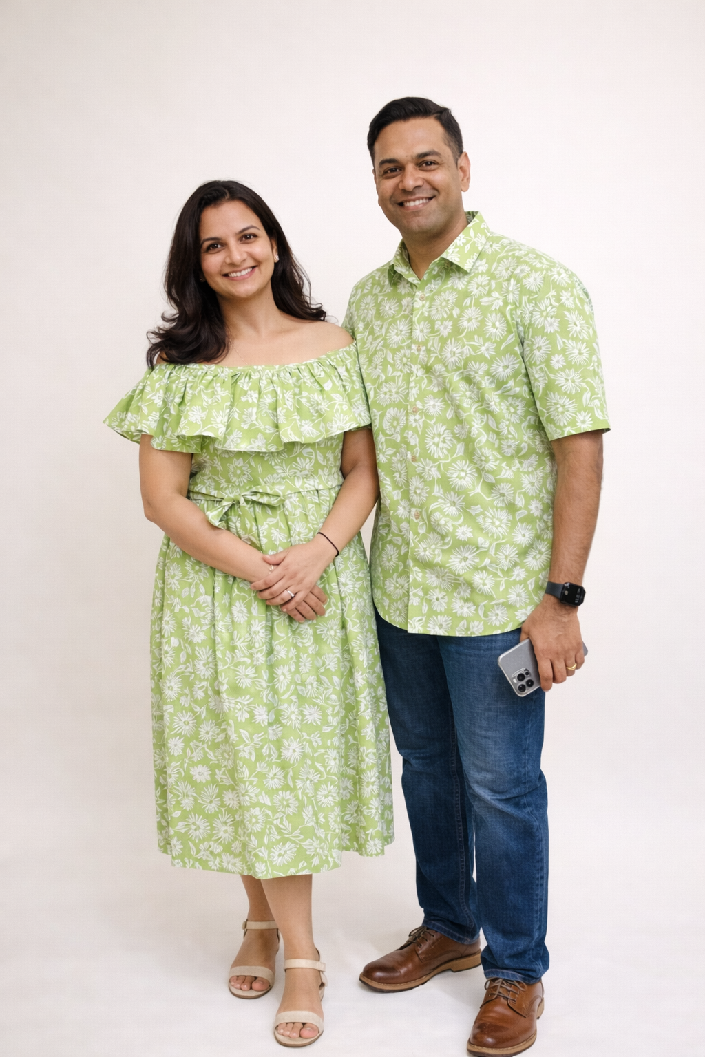 Cotton printed fabric used to make men’s half shirt and women’s off shoulder dress.